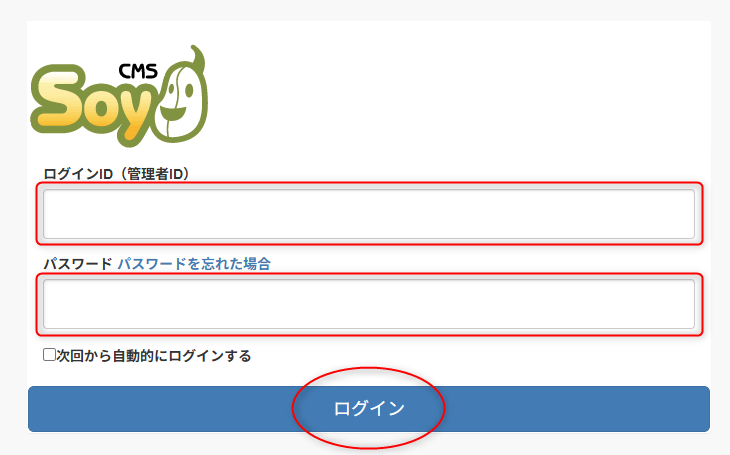 まず、管理画面URL にアクセスして管理画面にログインします。