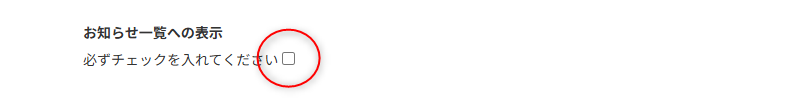 先述の「ラベル(記事のカテゴリー)の指定」で、お知らせを選択した場合、必ずチェックを入れてください。