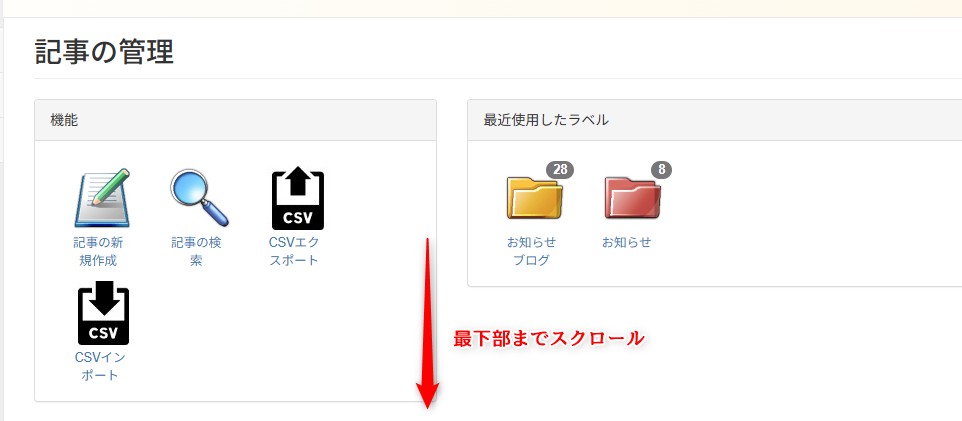 記事の管理画面に入室したら、最下部までスクロールして移動します。