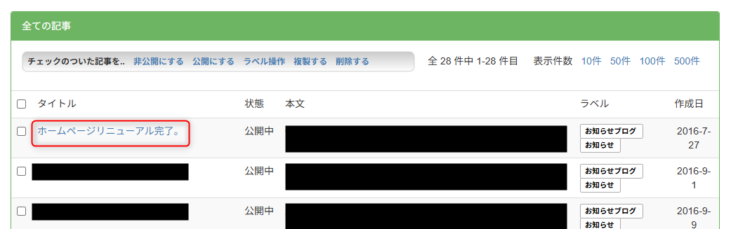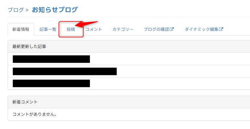 ブログ形式ではなく、お知らせ欄として使用する場合の更新方法はこちらをご覧ください。